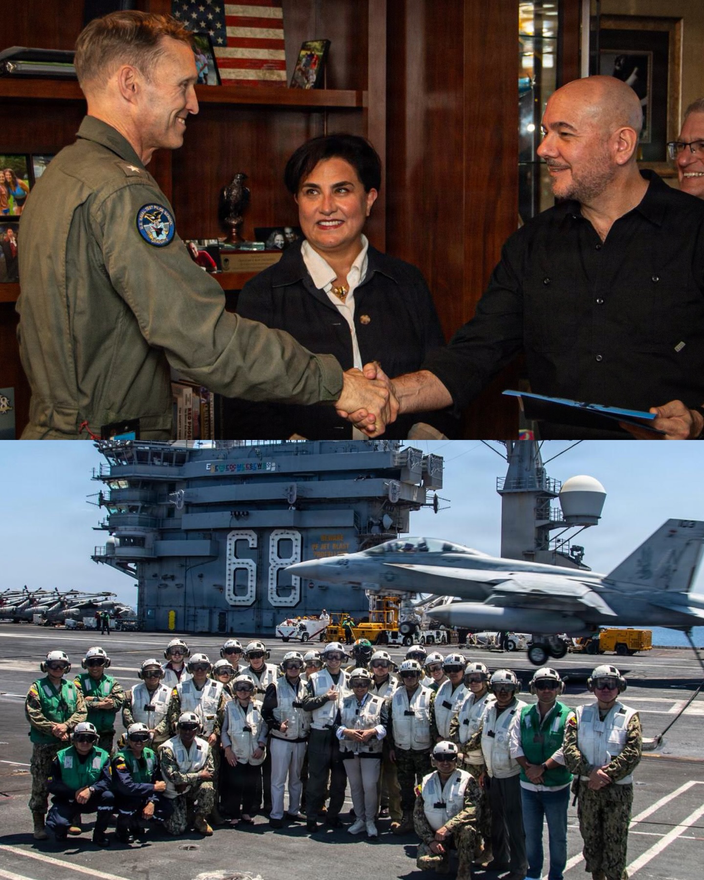 En este contexto, el ministro de Defensa Nacional, Gian Carlo Loffredo, visitó este día el portaaviones, acompañado por la Canciller, Gabriela Sommerfeld, el Chargé d’Affaires a.i. Lawrence Petroni y representantes del Gobierno de los Estados Unidos, en el marco del despliegue internacional Southern Seas 2026, consolidando un nuevo nivel de cooperación militar entre ambos países.