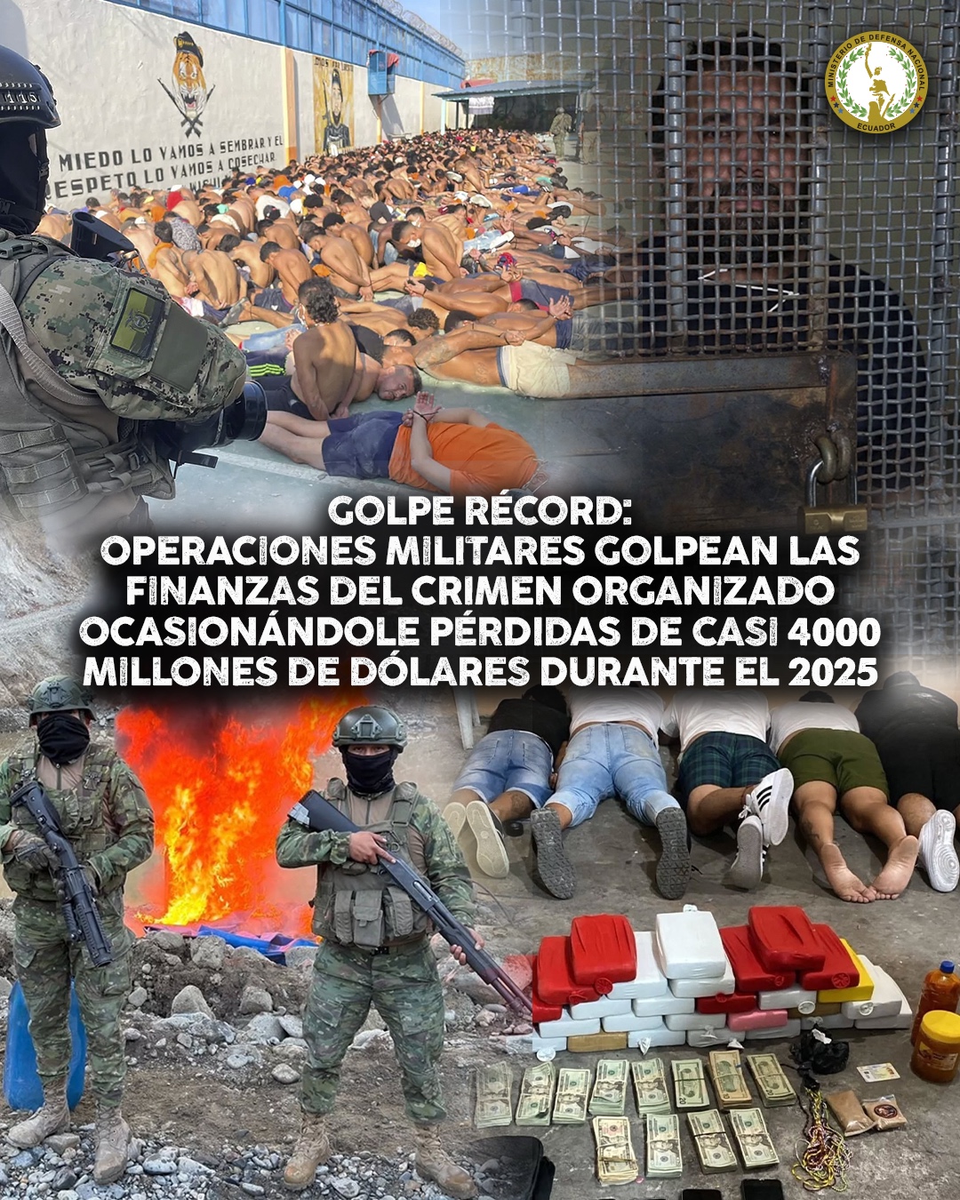 Las Fuerzas Armadas del Ecuador alcanzan resultados sin precedentes en la lucha contra la delincuencia organizada, el narcotráfico y el terrorismo. En lo que va del 2025, han ejecutado 272.744 operaciones militares en todo el territorio nacional, logrando afectar las finanzas criminales en cerca de 4.000 millones de dólares, una cifra histórica que refleja la eficacia operativa del Bloque de Seguridad, conformado por el Ministerio de Defensa Nacional, el Ministerio del Interior, las Fuerzas Armadas y la Policía Nacional.