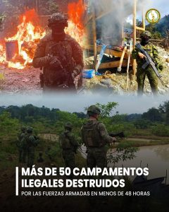 MÁS DE 50 CAMPAMENTOS ILEGALES DESTRUIDOS POR LAS FUERZAS ARMADAS EN MENOS DE 48 HORAS