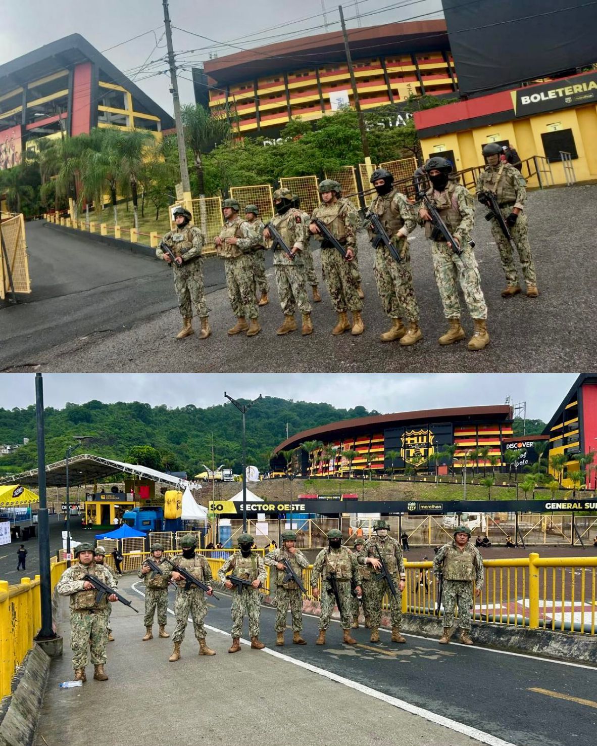 En el marco del compromiso con la seguridad ciudadana y el desarrollo ordenado de actividades de afluencia masiva, el Bloque de Seguridad, a través de las Fuerzas Armadas del Ecuador, desplegará a más de 700 militares en los alrededores del Estadio Monumental, con motivo del evento que se realizará este día en la ciudad de Guayaquil.